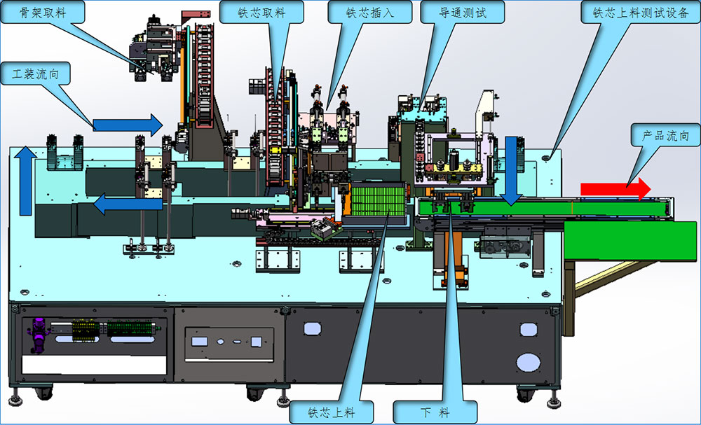 工艺流程:绕线骨架取料→铁芯压入组装