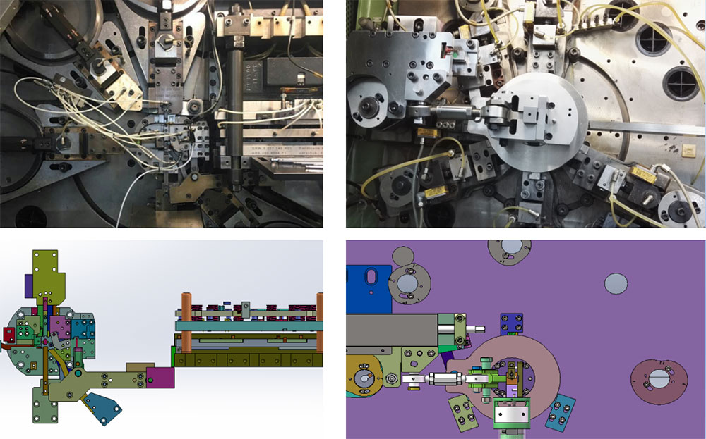 工艺流程:料带自动送料→冲裁模具→成型中心→凸轮协同动作,多工位成型→出料